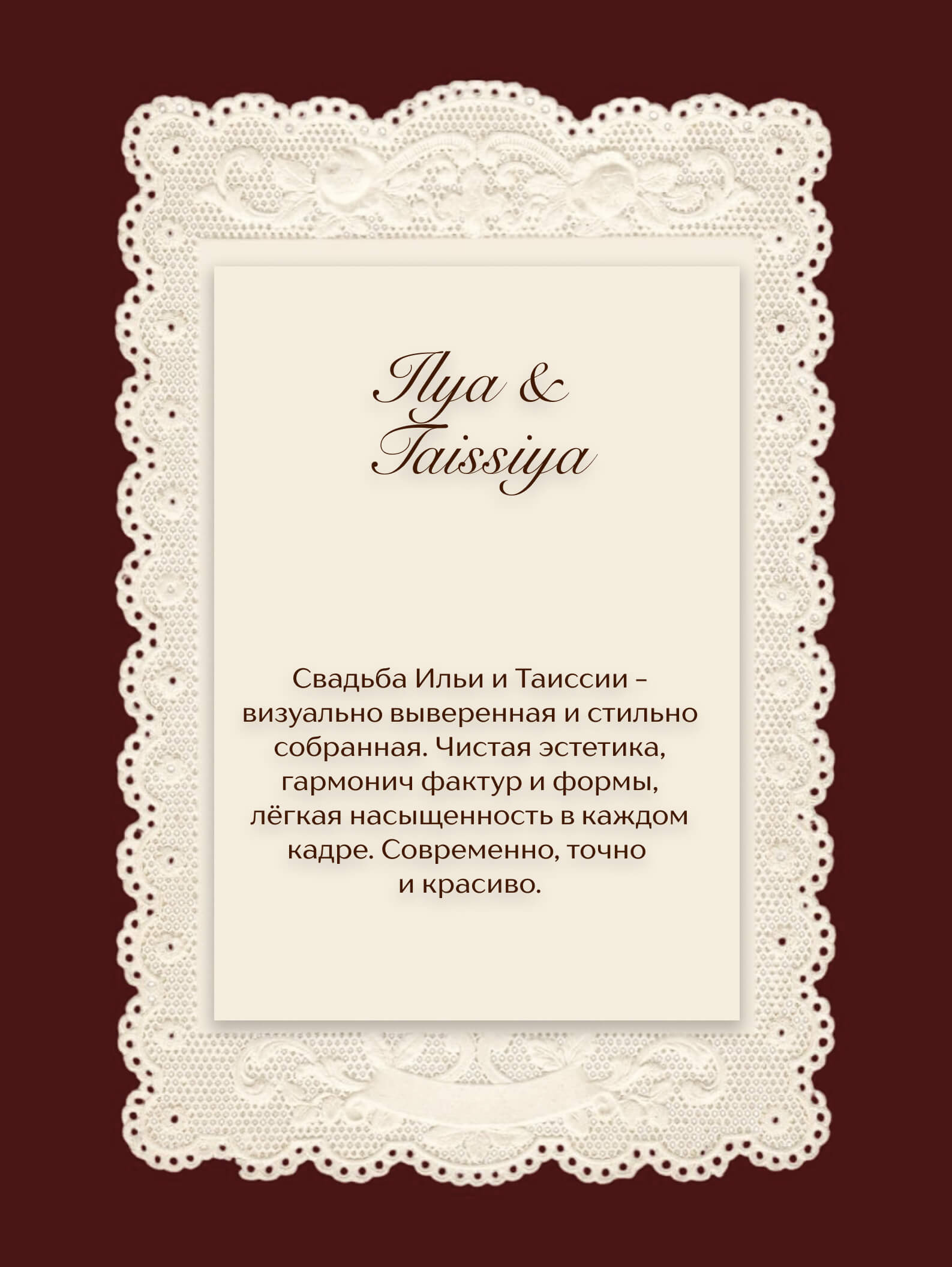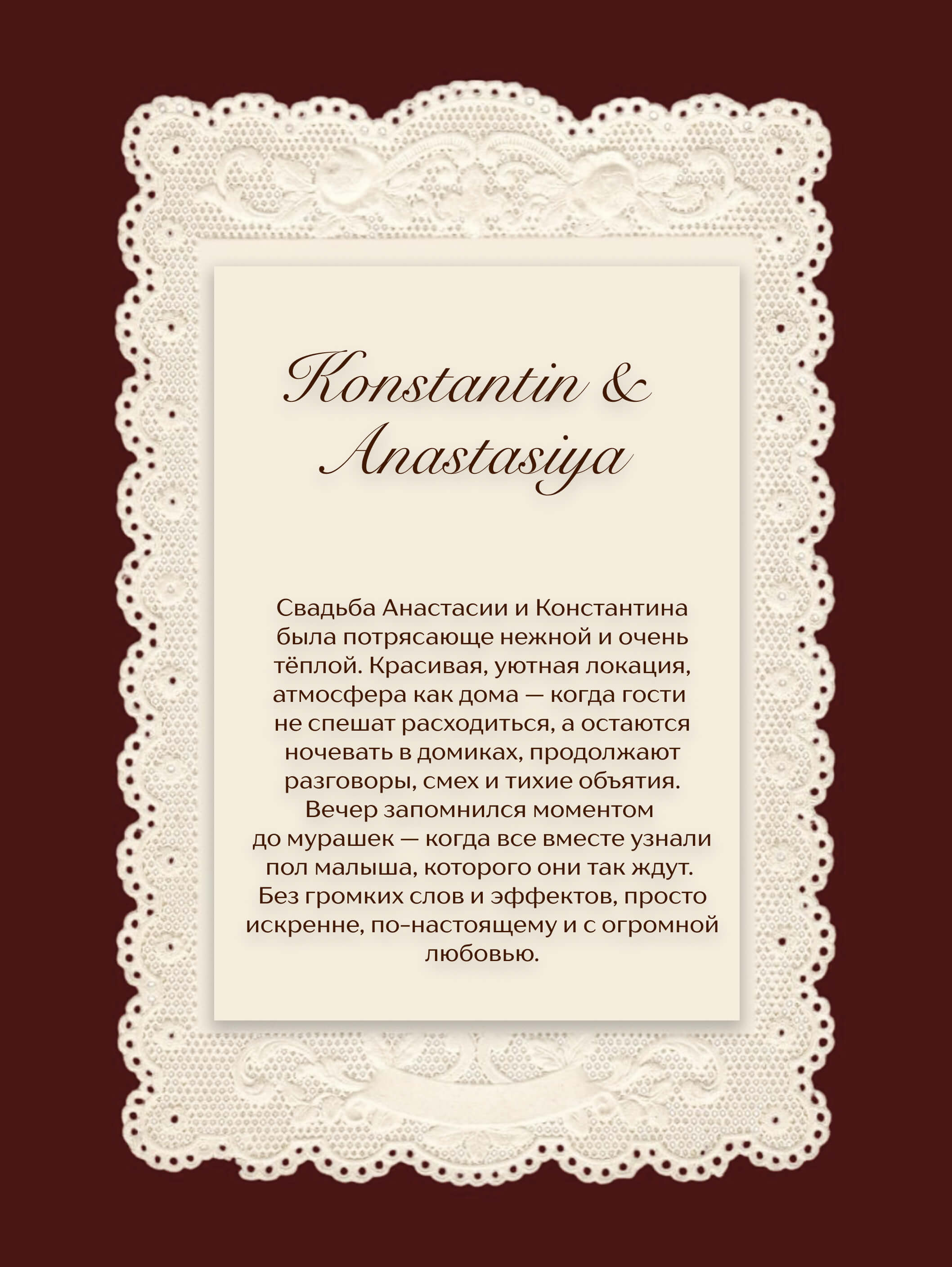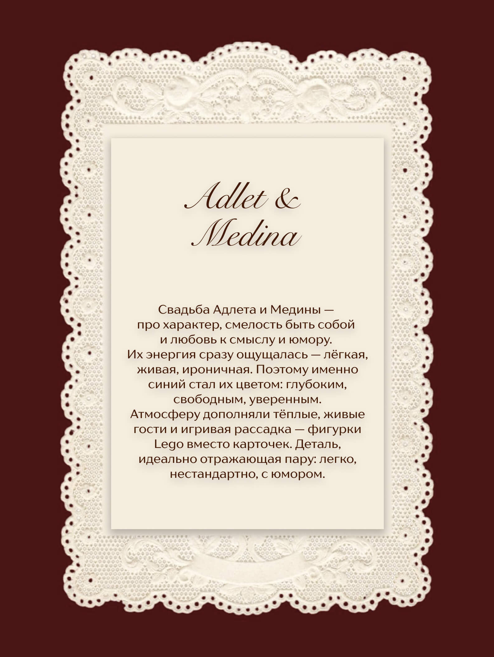 создавать свадьбы, которые отражают индивидуальность пары, их историю и ценности, а не просто следовать шаблонам.